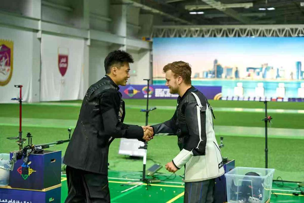 劉宇坤(左)與捷克選手普日夫拉茨基握手。圖片來自國際射聯(lián)官網(wǎng)