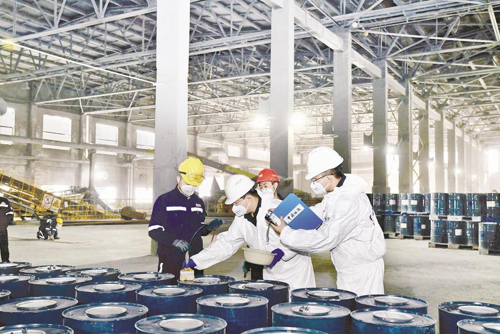 近日,烏海海關(guān)關(guān)員對內(nèi)蒙古宜化化工有限公司出口的化工產(chǎn)品進行檢查,不久后,這些產(chǎn)品將通過陸海聯(lián)運銷往東南亞市場。(王超 攝)