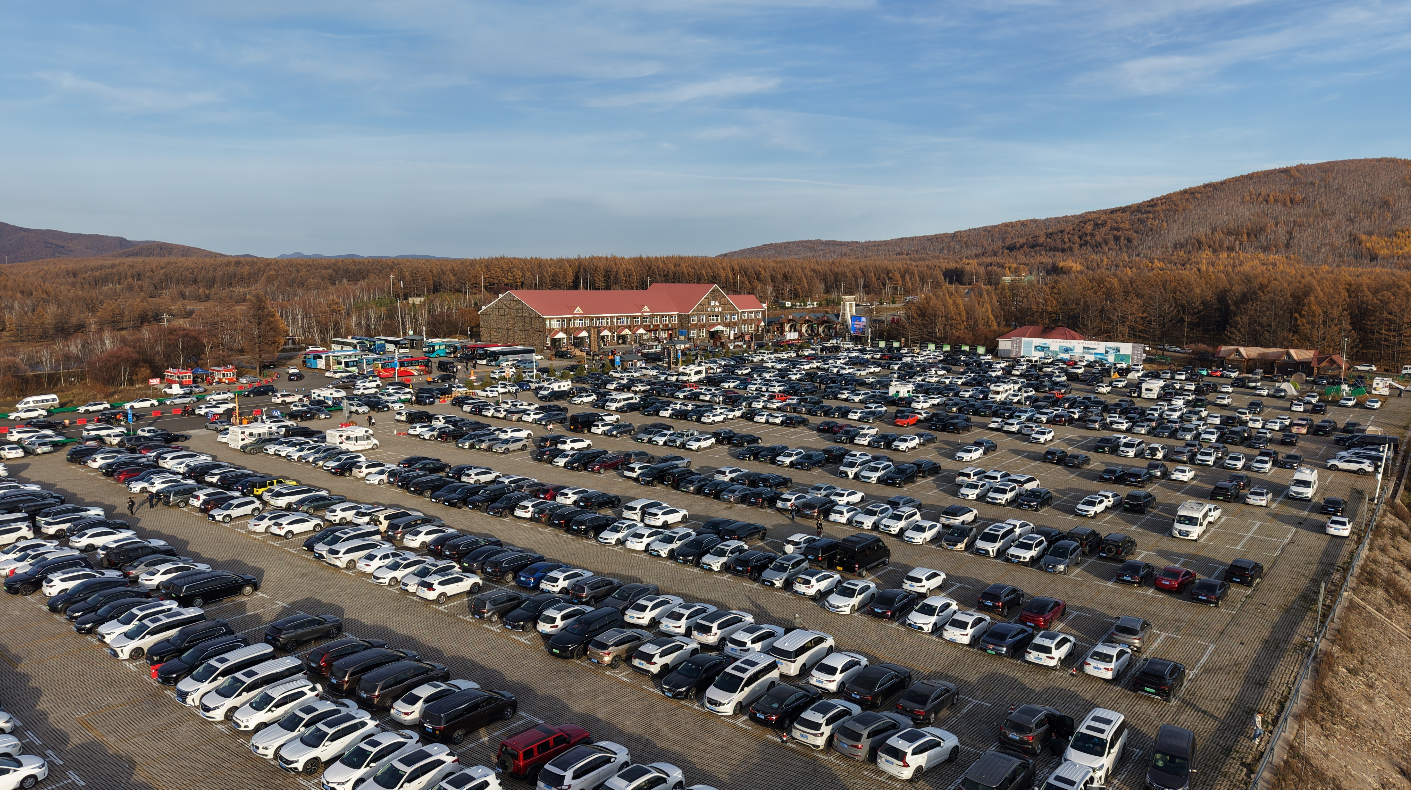 阿爾山自駕游車輛在景區(qū)停車場(chǎng)