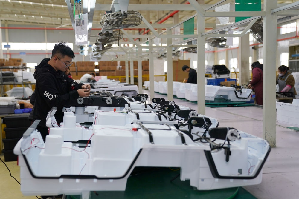 3月16日,工人在河北省邢臺經(jīng)濟(jì)開發(fā)區(qū)一家外貿(mào)企業(yè)生產(chǎn)車間組裝童車產(chǎn)品。新華社記者 駱學(xué)峰 攝