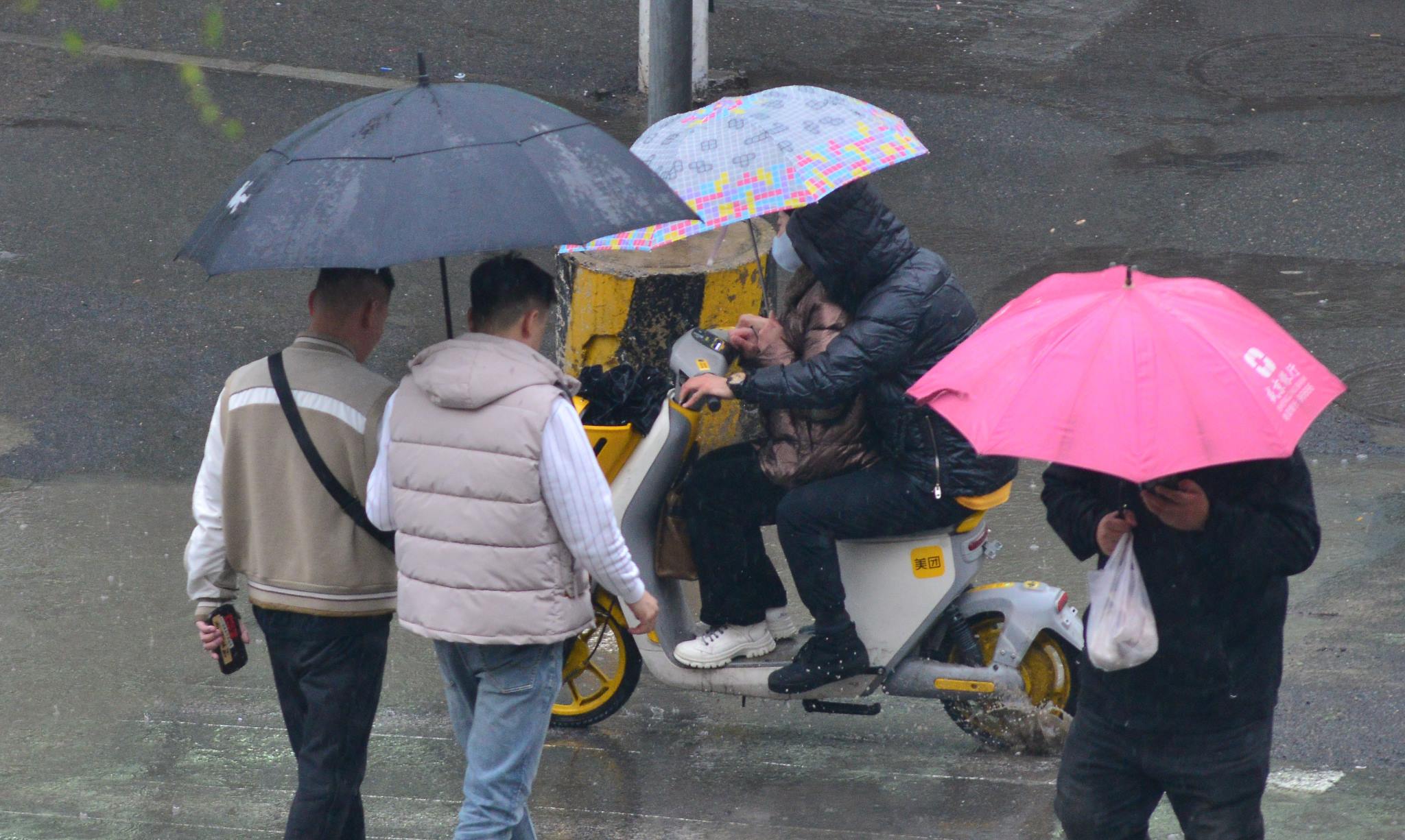 2023年4月28日,沈陽(yáng),降雨降溫持續(xù)多日,市民著厚衣出行。視覺(jué)中國(guó)