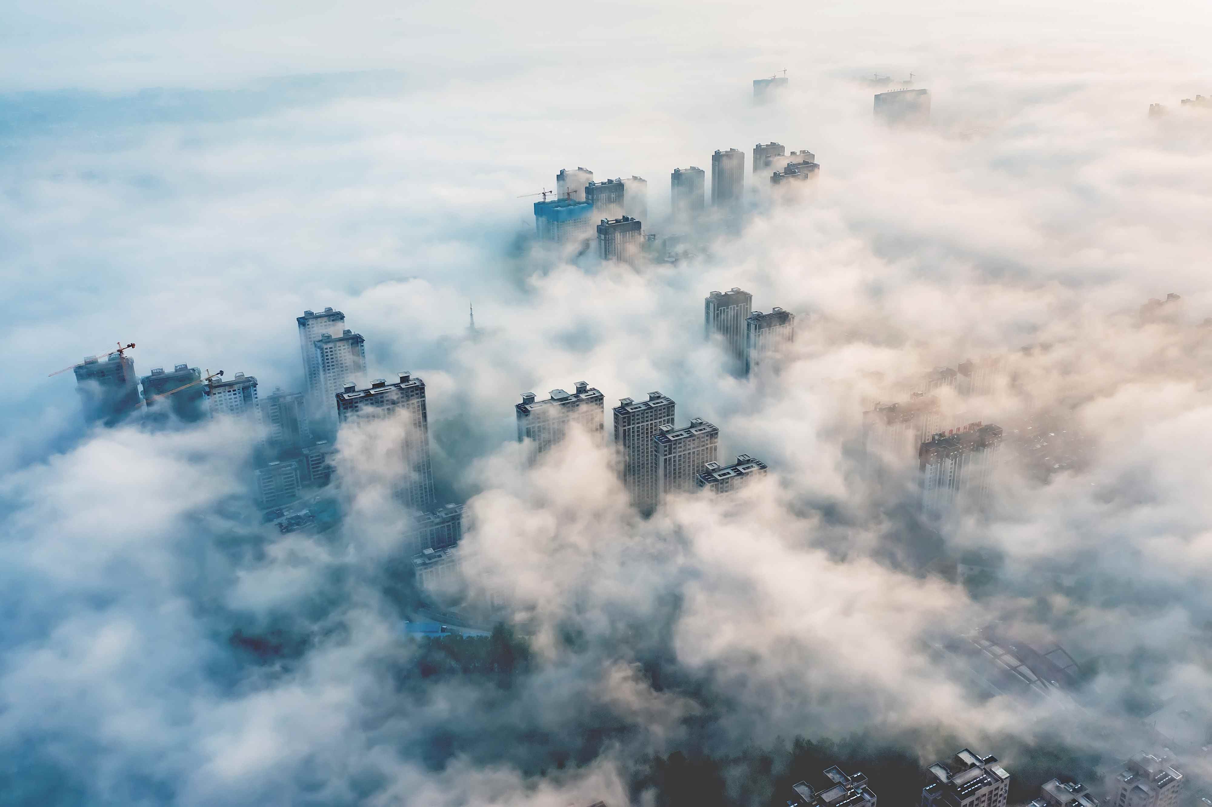 2023年6月11日,江蘇連云港東??h,城市上空云霧繚繞,蔚為壯觀。 視覺中國