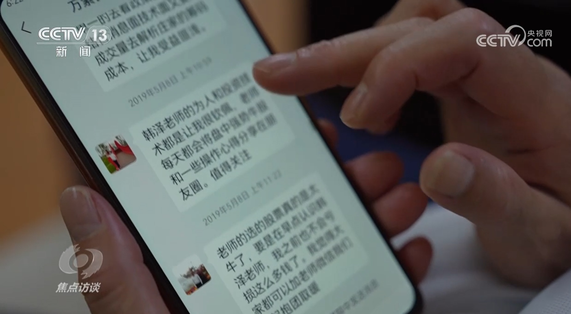 在這個群里,李女士認(rèn)識了一個叫“韓澤”的老師,平時在群里分享股市消息,晚上還會開直播課,說什么股能賺錢,指導(dǎo)大家,有的確實(shí)也賺了錢。
