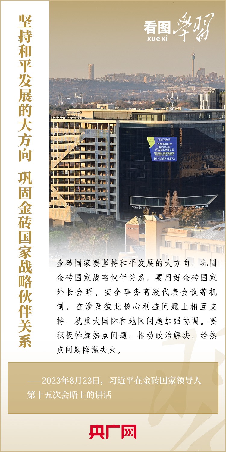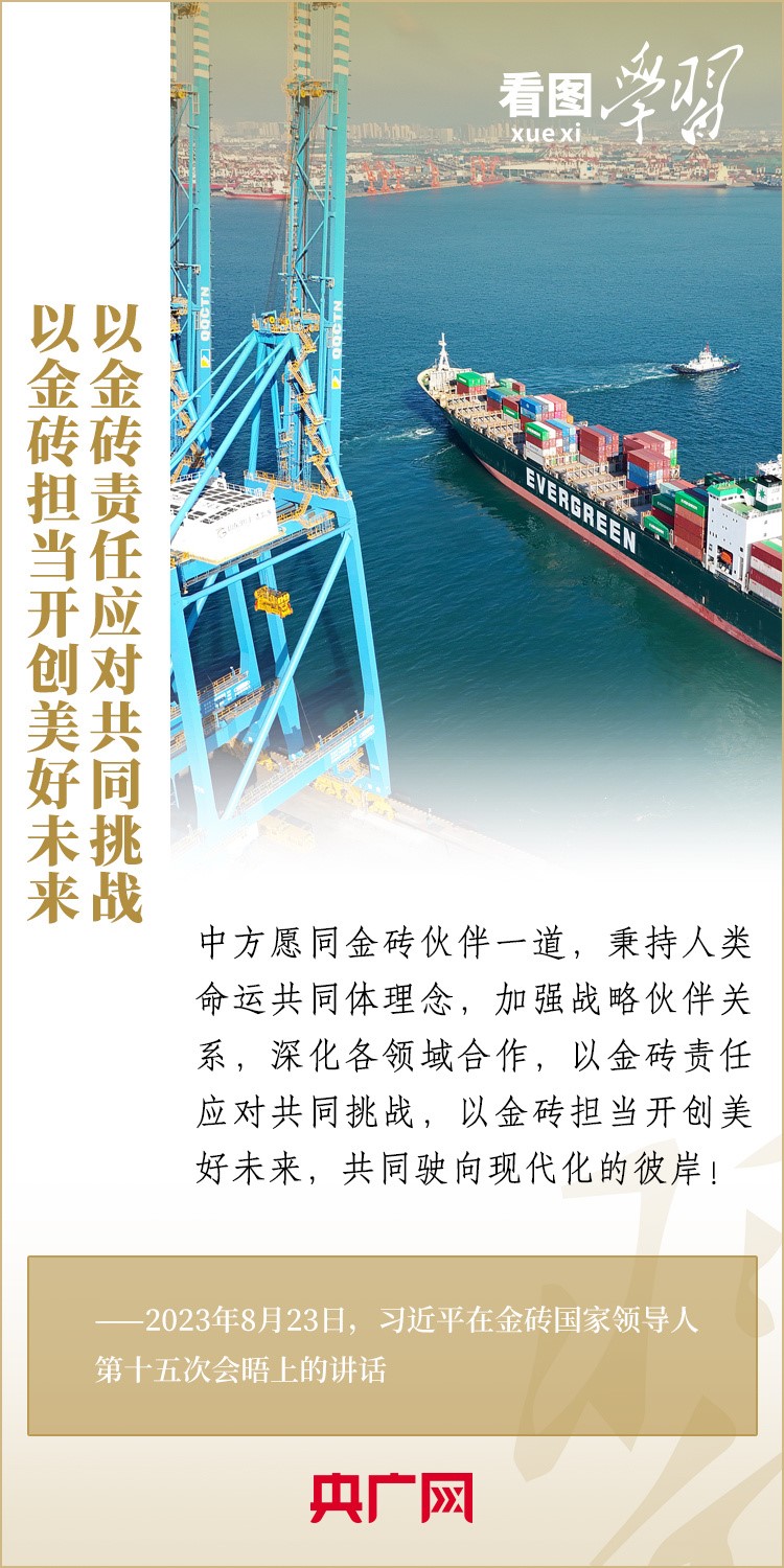當(dāng)?shù)貢r(shí)間8月23日,習(xí)近平主席出席金磚國家領(lǐng)導(dǎo)人第十五次會晤并發(fā)表重要講話,強(qiáng)調(diào)金磚國家要秉持開放包容、合作共贏的金磚精神,以金磚責(zé)任應(yīng)對共同挑戰(zhàn),以金磚擔(dān)當(dāng)開創(chuàng)美好未來。一起來學(xué)習(xí)!