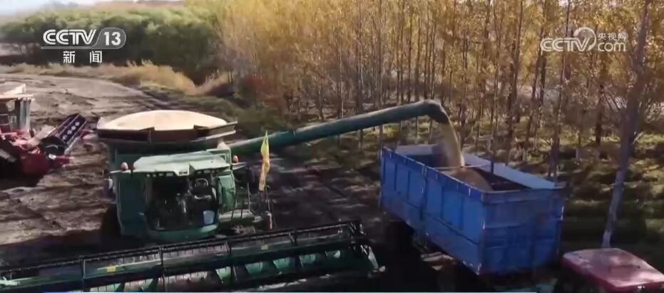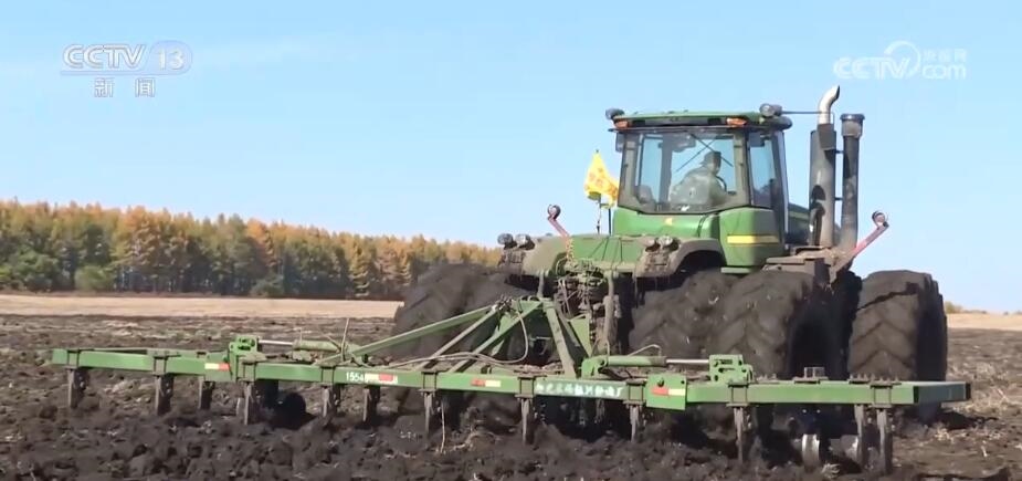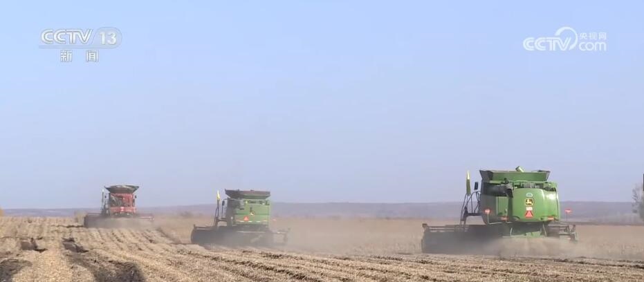 北大荒集團趙光農(nóng)場有限公司第九管理區(qū)副主任 周磊:半鏈軌過去之后,不破壞壟型,不誤車,能加快秋收的作業(yè)速度。我們預(yù)計在(10月)18日大豆全部收獲結(jié)束。