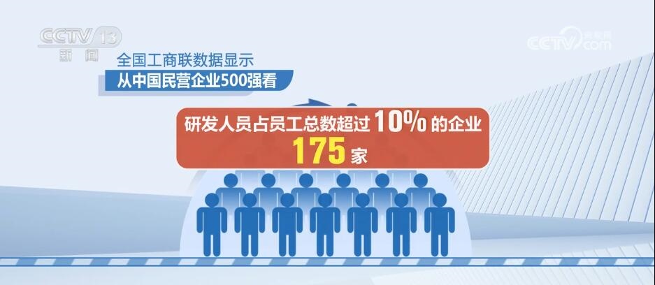 另一方面,民營企業(yè)科技創(chuàng)新能力進(jìn)一步強化。民營企業(yè)生來就是闖市場、搞創(chuàng)新的,從模式創(chuàng)新、應(yīng)用創(chuàng)新、集成創(chuàng)新開始,越來越多的民營企業(yè)開始勇闖創(chuàng)新無人區(qū)。據(jù)統(tǒng)計,民營企業(yè)貢獻(xiàn)了65%的專利、75%以上的技術(shù)創(chuàng)新、80%以上的新產(chǎn)品開發(fā),創(chuàng)新主體地位日益顯著。全國工商聯(lián)數(shù)據(jù)顯示,從中國民營企業(yè)500強看,研發(fā)人員占員工總數(shù)超過10%的企業(yè)175家,研發(fā)經(jīng)費投入強度超過10%的企業(yè)8家,414家企業(yè)的關(guān)鍵技術(shù)主要來源于自主開發(fā)與研制,432家企業(yè)通過自籌資金完成科技成果轉(zhuǎn)化。此外,九成以上的中國民營企業(yè)500強從不同層面實施或計劃實施數(shù)字化轉(zhuǎn)型。