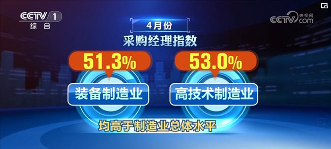 新動(dòng)能繼續(xù)較快擴(kuò)張。4月份,裝備制造業(yè)和高技術(shù)制造業(yè)采購(gòu)經(jīng)理指數(shù)分別為51.3%和53.0%,均高于制造業(yè)總體水平。