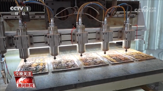 福建省天材古典工藝有限公司總經(jīng)理 黃海聲:這種首飾盒,一年整個(gè)鎮(zhèn)應(yīng)該向海內(nèi)外銷量超過(guò)幾十萬(wàn)件。傳統(tǒng)的師傅如果純手工雕刻,至少要花一個(gè)多月的時(shí)間。我們現(xiàn)在通過(guò)數(shù)字化的賦能,師傅把樣品做出來(lái)之后,通過(guò)數(shù)字化軟件傳輸給我們的機(jī)器然后進(jìn)行雕刻,半天的時(shí)間就能夠生產(chǎn)出來(lái)。機(jī)器設(shè)備也不斷地去優(yōu)化,每刀下去的精度差不多頭發(fā)絲這么細(xì)。