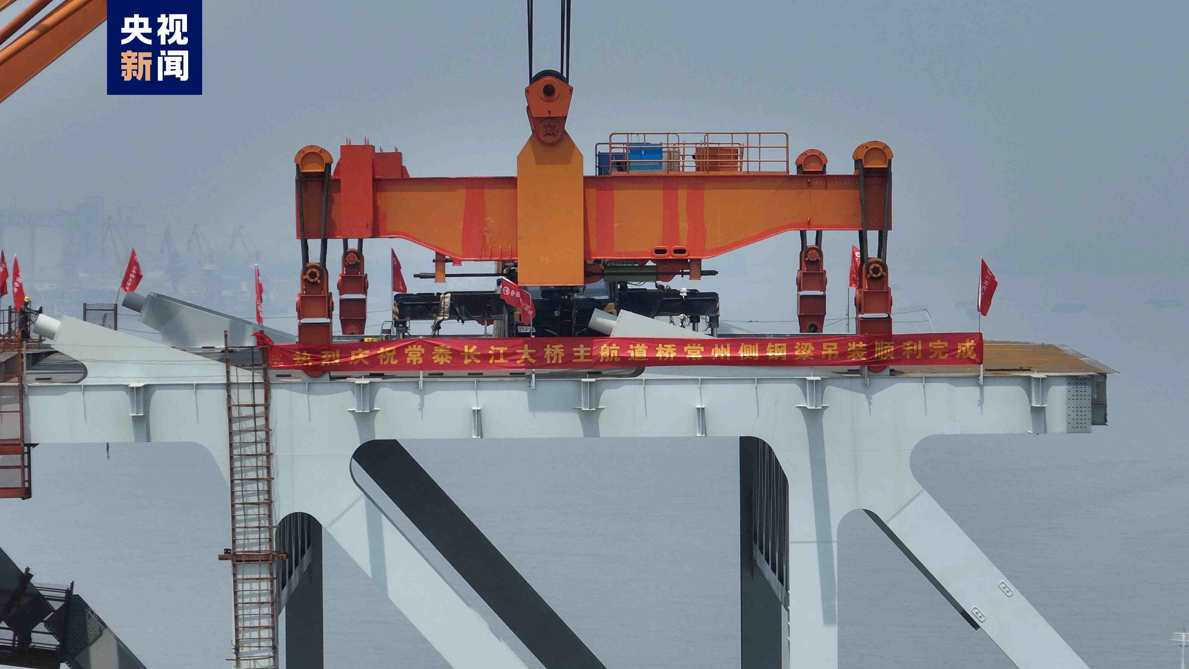 5月7日上午,常泰長江大橋主航道橋常州側(cè),最后一個大節(jié)段鋼梁平穩(wěn)吊裝完成,標(biāo)志著常泰長江大橋常州側(cè)主體工程全部完成,全橋預(yù)計6月合龍。
