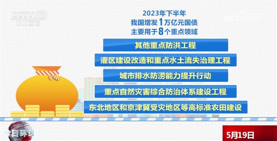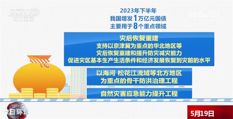去年下半年,我國增發(fā)了1萬億元國債,主要用于8個重點(diǎn)領(lǐng)域,包括災(zāi)后恢復(fù)重建,支持以京津冀為重點(diǎn)的華北地區(qū)等災(zāi)后恢復(fù)重建和提升防災(zāi)減災(zāi)能力,促進(jìn)災(zāi)區(qū)基本生產(chǎn)生活條件和經(jīng)濟(jì)發(fā)展恢復(fù)到災(zāi)前的水平,以海河、松花江流域等北方地區(qū)為重點(diǎn)的骨干防洪治理工程,自然災(zāi)害應(yīng)急能力提升工程,其他重點(diǎn)防洪工程,灌區(qū)建設(shè)改造和重點(diǎn)水土流失治理工程,城市排水防澇能力提升行動,重點(diǎn)自然災(zāi)害綜合防治體系建設(shè)工程,東北地區(qū)和京津冀受災(zāi)地區(qū)等高標(biāo)準(zhǔn)農(nóng)田建設(shè)。