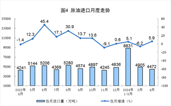 進(jìn)口數(shù)據(jù)來源于海關(guān)總署,其中2024年4月份數(shù)據(jù)為快訊數(shù)據(jù)。