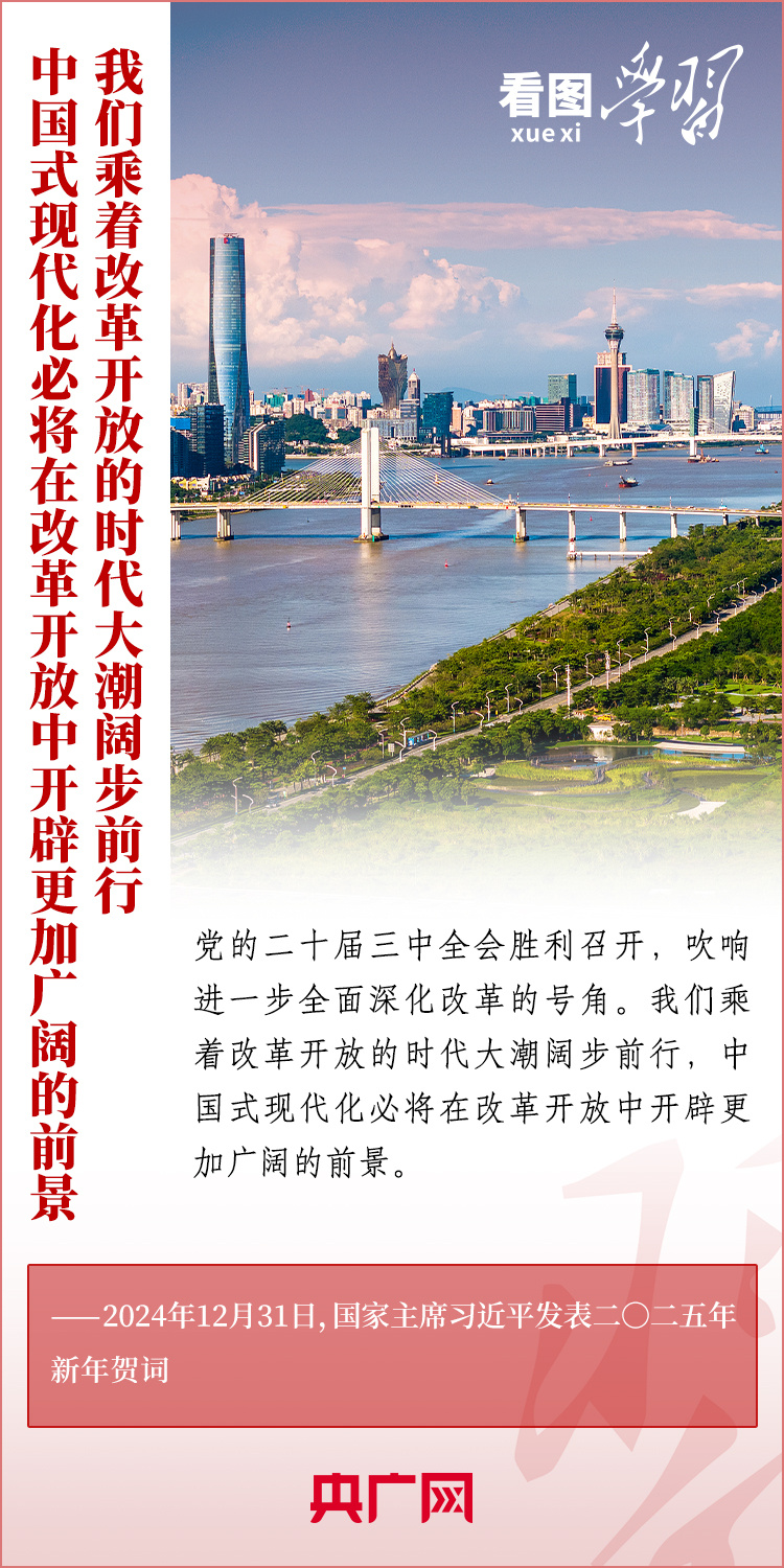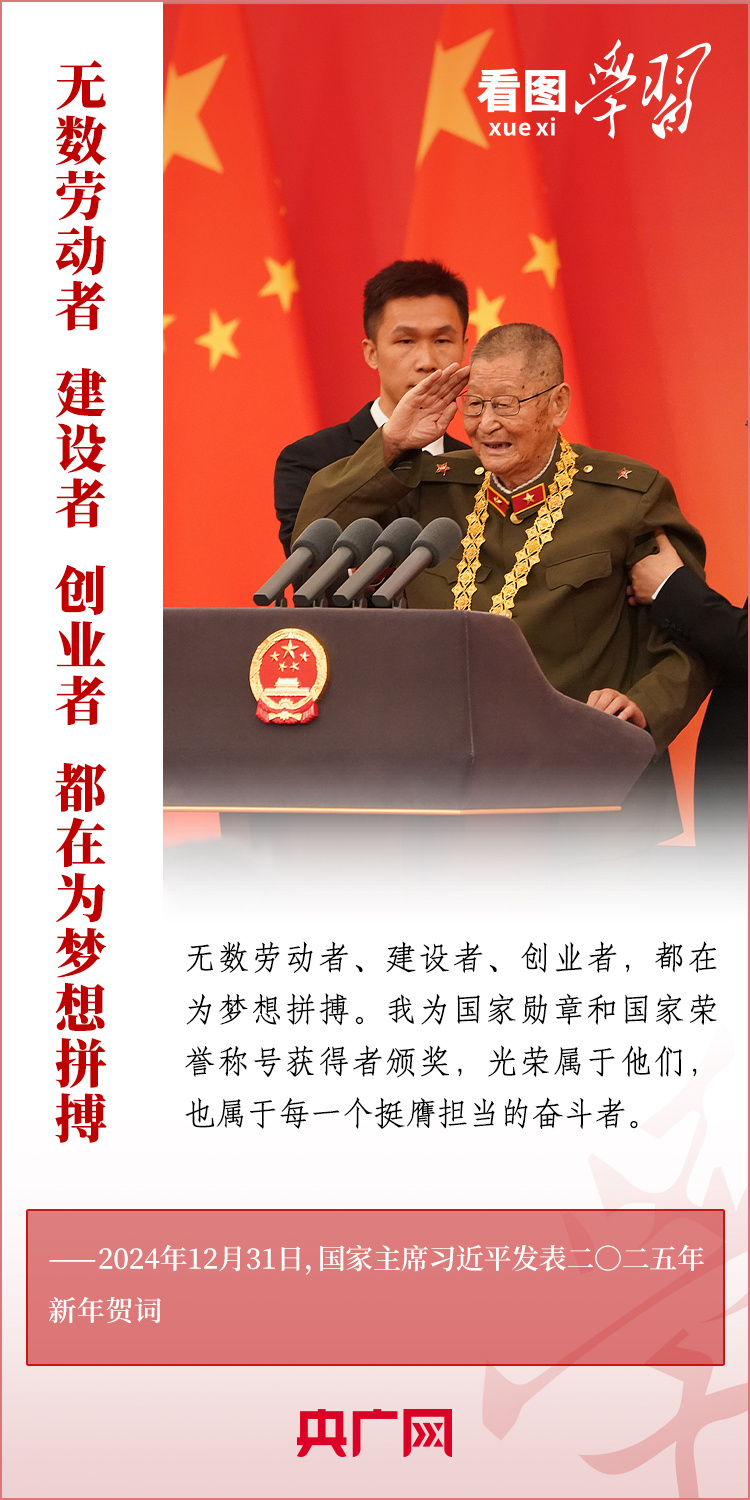 “夢(mèng)雖遙,追則能達(dá);愿雖艱,持則可圓?!毙履昵跋Γ?xí)近平主席發(fā)表二〇二五年新年賀詞。在溫暖有力的講述中,習(xí)主席深情回望過(guò)去一年中國(guó)不平凡的奮斗歷程、精彩瞬間,感慨大家一道經(jīng)歷的風(fēng)雨彩虹、難忘時(shí)刻,贊美無(wú)數(shù)為夢(mèng)想拼搏的勞動(dòng)者、建設(shè)者、創(chuàng)業(yè)者。習(xí)主席說(shuō),中國(guó)式現(xiàn)代化的新征程上,每一個(gè)人都是主角,每一份付出都彌足珍貴,每一束光芒都熠熠生輝。讓我們充滿(mǎn)信心,在新的一年接續(xù)奮斗!