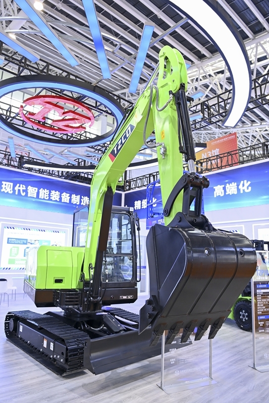 這是在2025年山西(太原)能源產(chǎn)業(yè)博覽會上展示的電動液壓挖掘機(9月27日攝)。