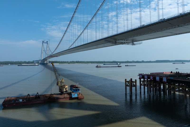 7月26日拍攝的合龍后的雙柳長江大橋(無人機(jī)照片)。