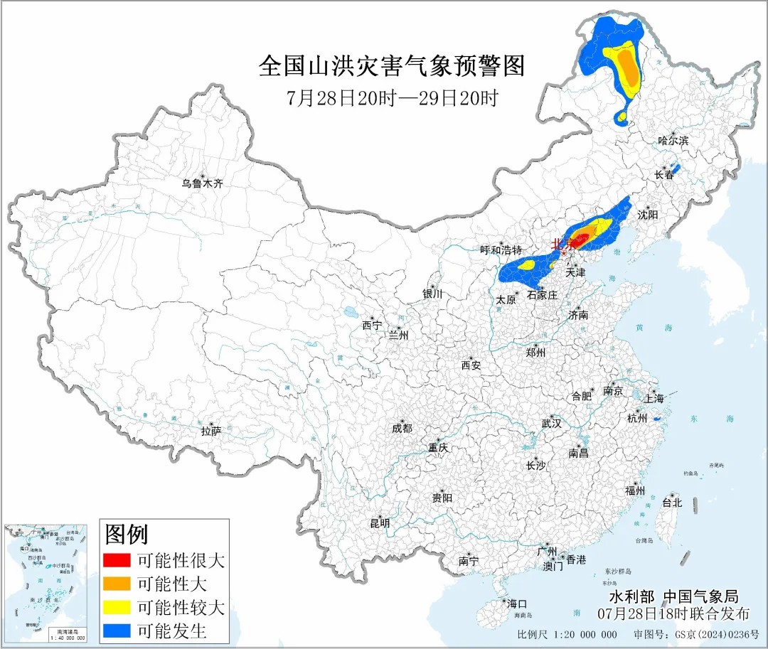 據(jù)“中國(guó)水利”微信公眾號(hào)消息,水利部和中國(guó)氣象局7月28日18時(shí)聯(lián)合發(fā)布紅色山洪災(zāi)害氣象預(yù)警:預(yù)計(jì),7月28日20時(shí)至7月29日20時(shí),北京東部、天津北部、河北中部和東北部、內(nèi)蒙古東北部、遼寧西部、黑龍江西部等地部分地區(qū)發(fā)生山洪災(zāi)害可能性大(橙色預(yù)警),其中,北京東部、天津北部、河北東北部局地發(fā)生山洪災(zāi)害可能性很大(紅色預(yù)警),預(yù)警區(qū)域涉及的縣(市、區(qū))見(jiàn)下表。其他地區(qū)也可能因局地短歷時(shí)強(qiáng)降水引發(fā)山洪災(zāi)害,請(qǐng)各地注意做好實(shí)時(shí)監(jiān)測(cè)、防汛預(yù)警和轉(zhuǎn)移避險(xiǎn)等防范工作。