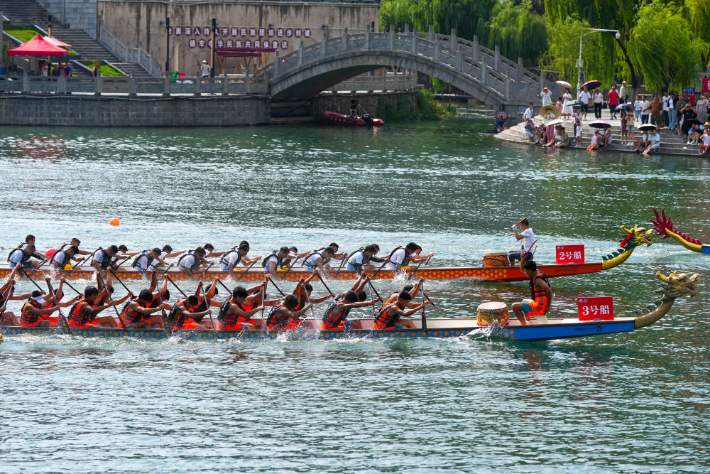 龍舟在本次世運(yùn)會(huì)上首次成為正式比賽項(xiàng)目,這也符合世運(yùn)會(huì)設(shè)項(xiàng)突出地域特色的特點(diǎn)。圖為貴州省黔東南苗族侗族自治州鎮(zhèn)遠(yuǎn)縣?陽河上的龍舟比賽。新華社發(fā)(龍建睿攝)
