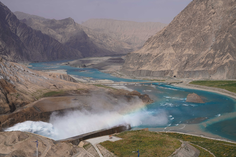 阿爾塔什水利樞紐工程位于新疆維吾爾自治區(qū)喀什地區(qū)莎車縣霍什拉甫鄉(xiāng)和克孜勒蘇柯爾克孜自治州阿克陶縣庫(kù)斯拉甫鄉(xiāng)交界處,是葉爾羌河山區(qū)控制性水利樞紐工程,總庫(kù)容22.49億立方米,設(shè)計(jì)年發(fā)電量21.86億千瓦時(shí),是新疆目前規(guī)模最大的水利樞紐工程。該工程兼顧生態(tài)、防洪、灌溉、發(fā)電等功能,2021年8月建成投產(chǎn)以來,平均每年向塔里木河干流生態(tài)補(bǔ)水約3.3億立方米。該工程建成后,徹底解決了葉爾羌河千年水患,每年減少約1000萬人次的防洪投入;同時(shí)為南疆提供清潔能源,改善了南疆的電力短缺狀況。