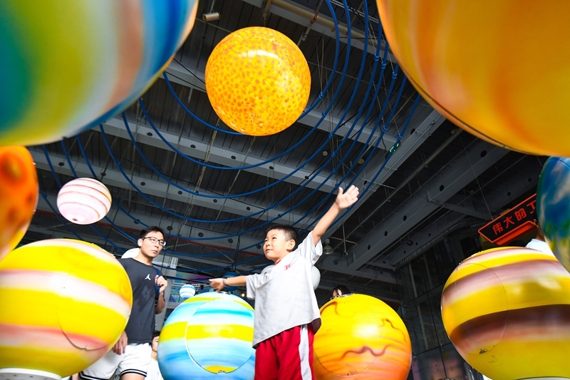 8月10日,小朋友在南京科技館體驗(yàn)科技裝置。