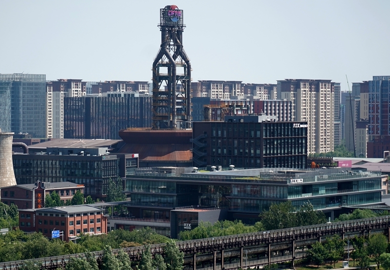 8月11日拍攝的首鋼園冷卻塔“籃球公園”。