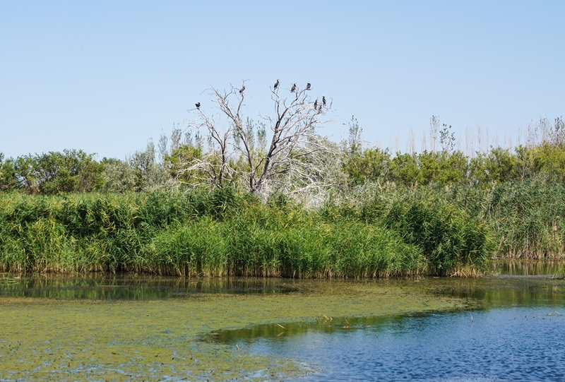 8月10日,鸕鶿在瑪納斯國(guó)家濕地公園樹(shù)枝上棲息。
