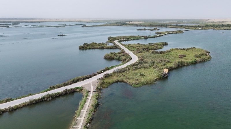 這是8月10日拍攝的瑪納斯國(guó)家濕地公園(無(wú)人機(jī)照片)。