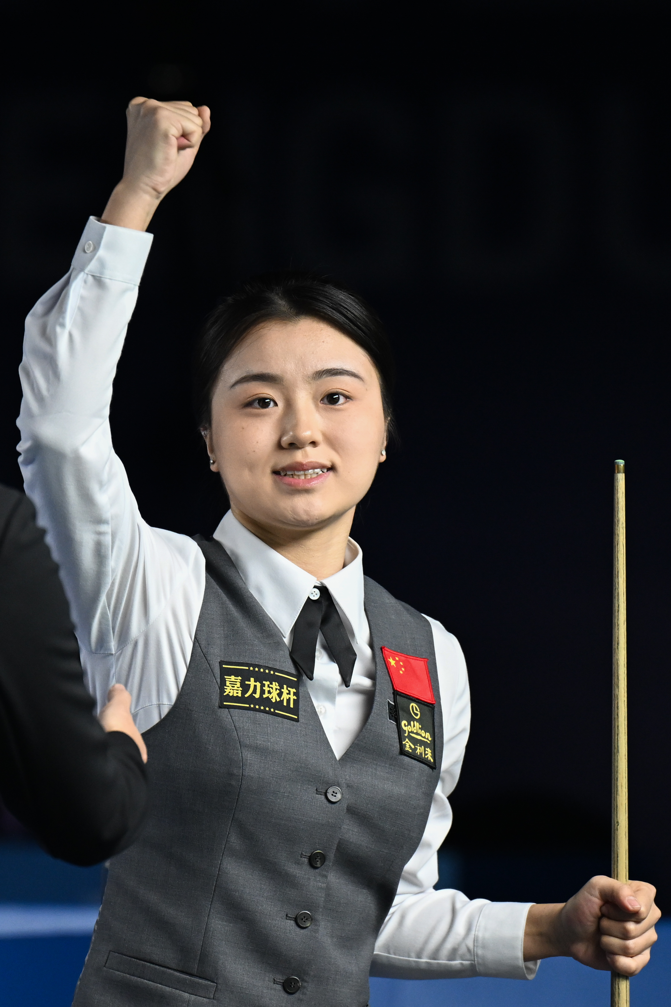 由于世運會斯諾克項目采用三局兩勝制,選手們在進(jìn)攻選擇上都格外謹(jǐn)慎。決賽首局雙方在攻防兩端幾度糾纏,最終對手防守出現(xiàn)漏洞,白雨露上手42:18拿下首局。第二局的劇情更為跌宕起伏,白雨露取得10:1領(lǐng)先后貢獻(xiàn)精彩防守,那魯差數(shù)度解球未果,被罰20分。不過白雨露隨后上手后白球掉袋,那魯差一度將分差縮小至10分。此時臺面只剩兩顆球,分?jǐn)?shù)仍夠?qū)κ址闯jP(guān)鍵時刻,白雨露果斷選擇進(jìn)攻遠(yuǎn)臺粉球,隨著粉球應(yīng)聲落袋,體育館內(nèi)爆發(fā)出熱烈的歡呼。雙方握手之后,白雨露轉(zhuǎn)向觀眾,舉起握拳的右手。
