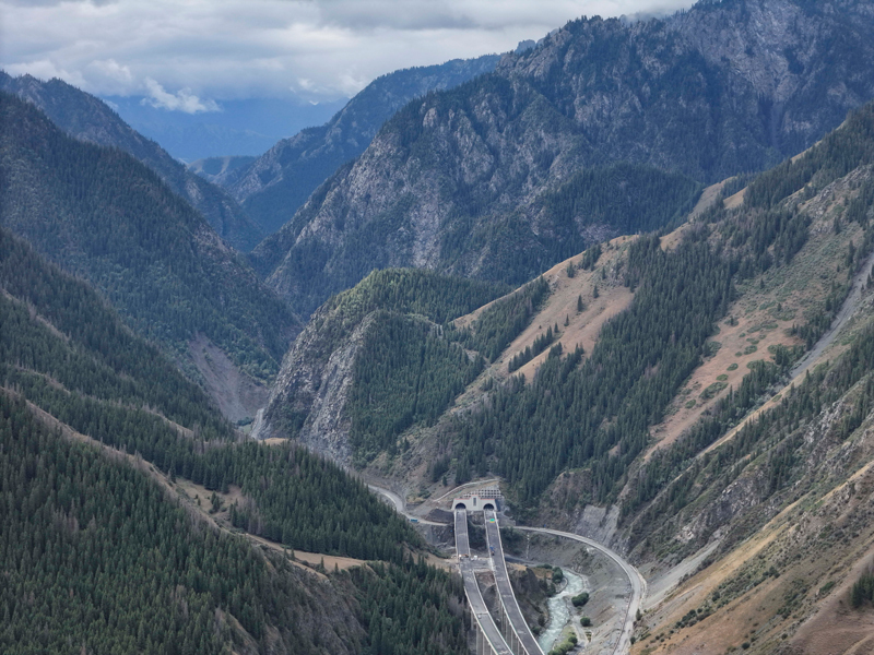 新疆烏尉高速公路穿越天山山脈(8月19日攝,無人機照片)。
