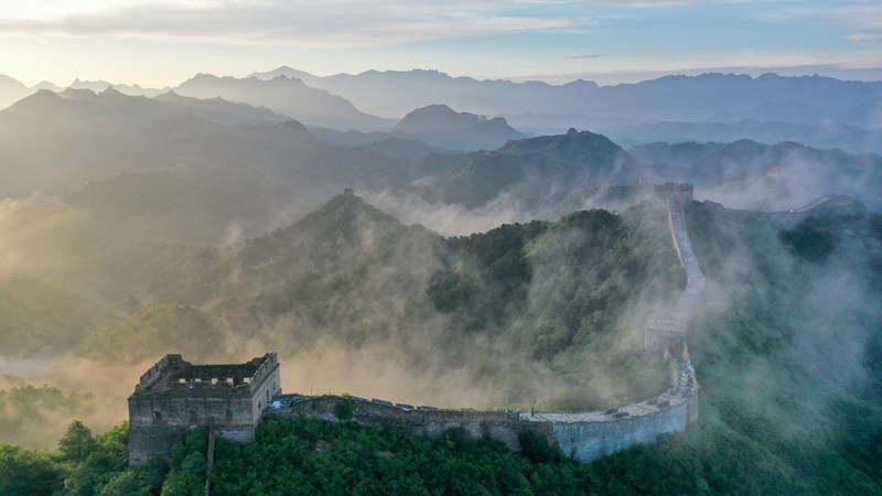 8月25日清晨,位于河北省承德市灤平縣的金山嶺長城出現(xiàn)云海景觀。涌動(dòng)的云海與長城、山巒相互交融,壯美如畫。