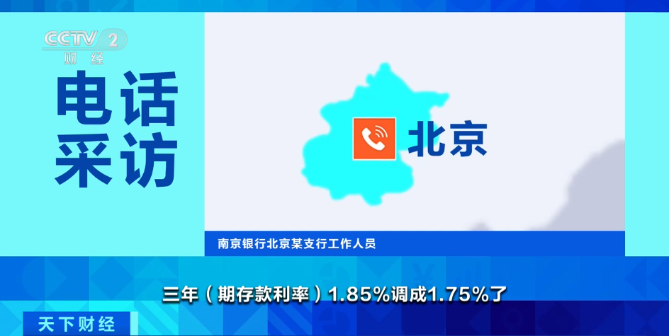 南京銀行北京某支行工作人員:上周五,三年(期存款利率)1.85%調成1.75%了。