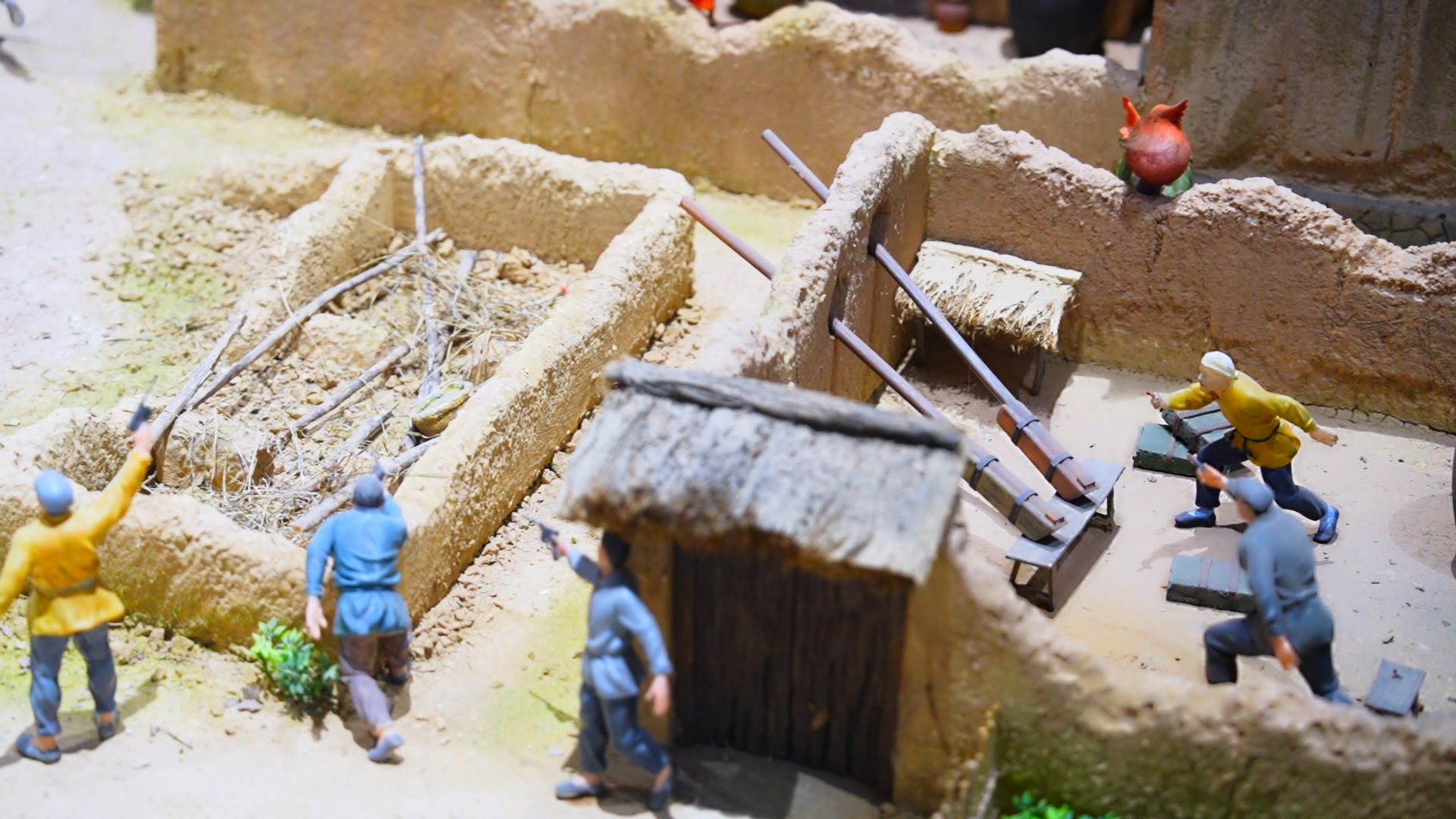 微山島爭(zhēng)奪戰(zhàn)模型,戰(zhàn)士們使用“火雞陣”與鴨槍