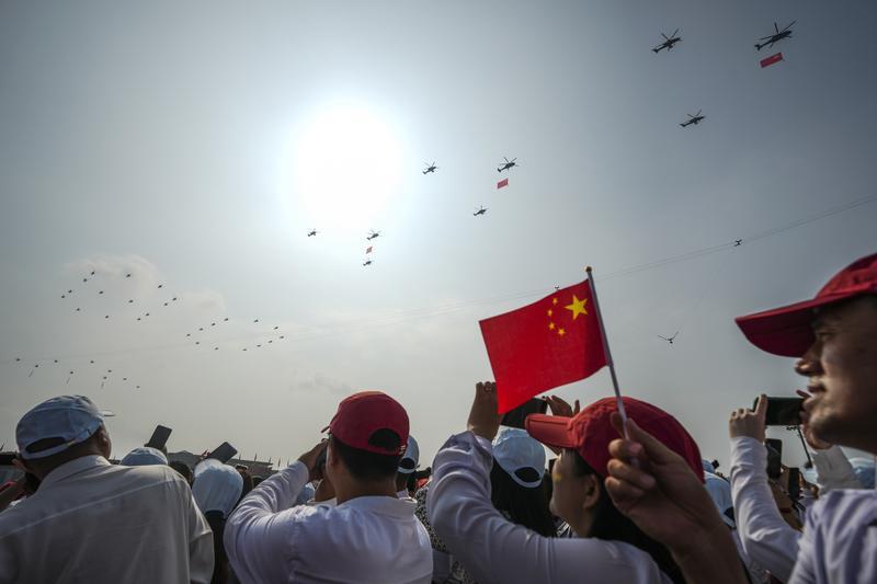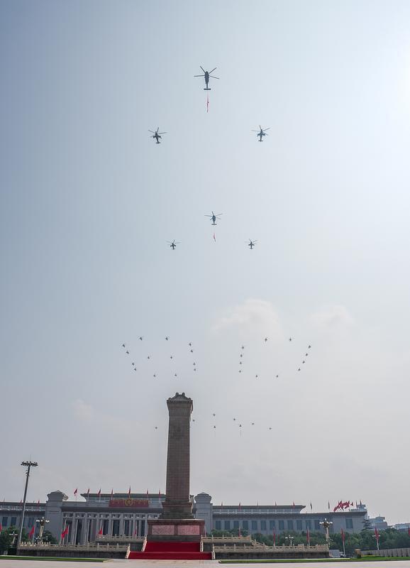9月3日,紀念中國人民抗日戰(zhàn)爭暨世界反法西斯戰(zhàn)爭勝利80周年大會在北京隆重舉行。這是空中護旗梯隊。