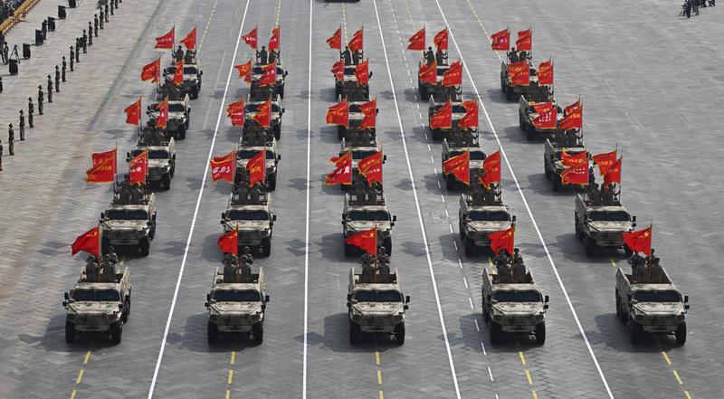 9月3日,紀念中國人民抗日戰(zhàn)爭暨世界反法西斯戰(zhàn)爭勝利80周年大會在北京隆重舉行。這是裝備方隊接受檢閱。