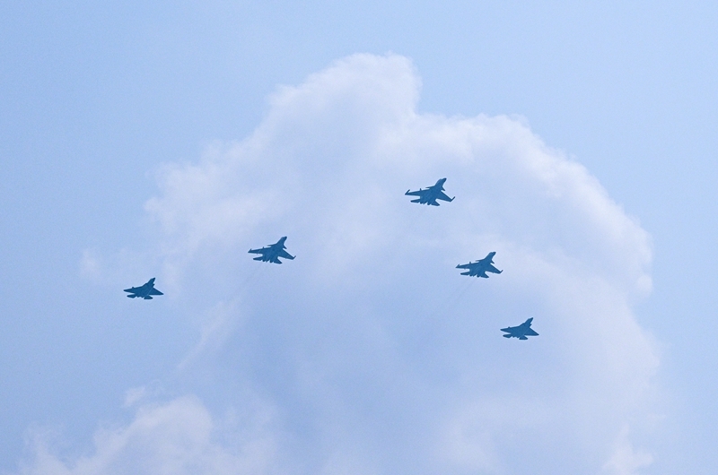 9月3日,紀(jì)念中國人民抗日戰(zhàn)爭暨世界反法西斯戰(zhàn)爭勝利80周年大會(huì)在北京隆重舉行。這是艦載機(jī)梯隊(duì)接受檢閱。