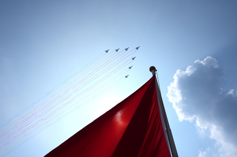 9月3日,紀(jì)念中國人民抗日戰(zhàn)爭暨世界反法西斯戰(zhàn)爭勝利80周年大會(huì)在北京隆重舉行。這是教練機(jī)梯隊(duì)接受檢閱。