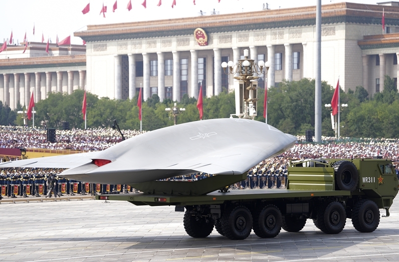 9月3日,紀(jì)念中國人民抗日戰(zhàn)爭暨世界反法西斯戰(zhàn)爭勝利80周年大會(huì)在北京隆重舉行。這是空中無人作戰(zhàn)方隊(duì)接受檢閱。