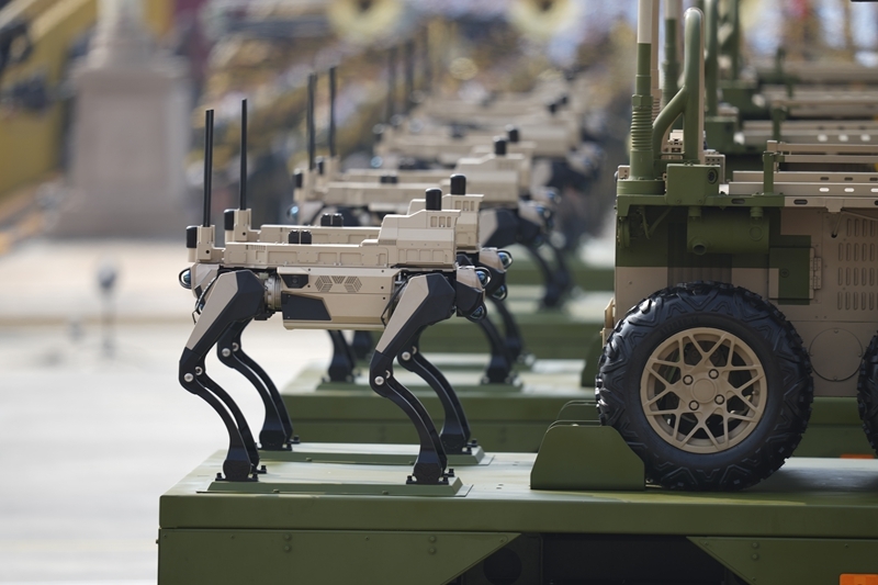 9月3日,紀(jì)念中國人民抗日戰(zhàn)爭暨世界反法西斯戰(zhàn)爭勝利80周年大會(huì)在北京隆重舉行。這是陸上無人作戰(zhàn)方隊(duì)接受檢閱。