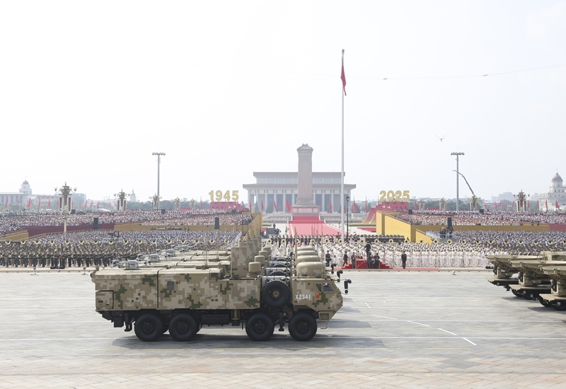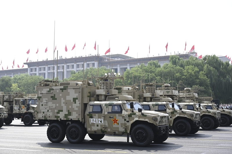 9月3日,紀(jì)念中國(guó)人民抗日戰(zhàn)爭(zhēng)暨世界反法西斯戰(zhàn)爭(zhēng)勝利80周年大會(huì)在北京隆重舉行。這是信息支援方隊(duì)接受檢閱。