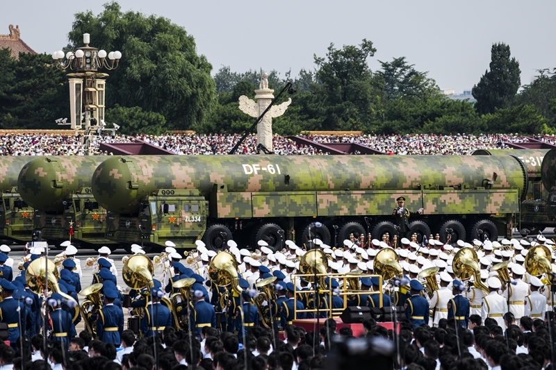 9月3日,紀(jì)念中國(guó)人民抗日戰(zhàn)爭(zhēng)暨世界反法西斯戰(zhàn)爭(zhēng)勝利80周年大會(huì)在北京隆重舉行。這是核導(dǎo)彈第一方隊(duì)接受檢閱。