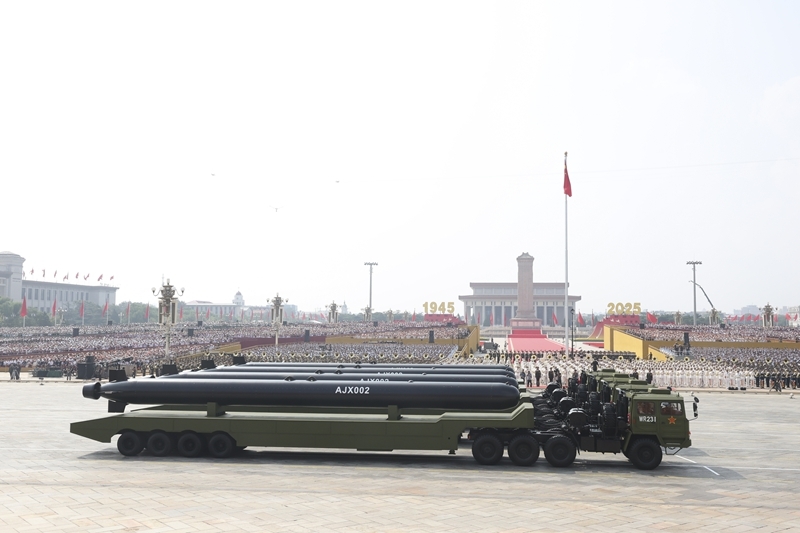 9月3日,紀(jì)念中國(guó)人民抗日戰(zhàn)爭(zhēng)暨世界反法西斯戰(zhàn)爭(zhēng)勝利80周年大會(huì)在北京隆重舉行。這是高超聲速導(dǎo)彈方隊(duì)接受檢閱。