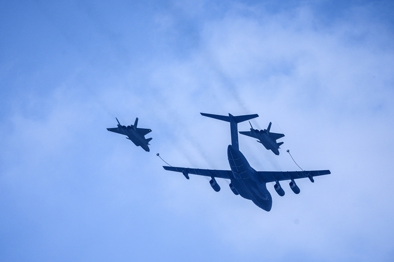 9月3日,紀(jì)念中國(guó)人民抗日戰(zhàn)爭(zhēng)暨世界反法西斯戰(zhàn)爭(zhēng)勝利80周年大會(huì)在北京隆重舉行。這是加受油機(jī)梯隊(duì)接受檢閱。