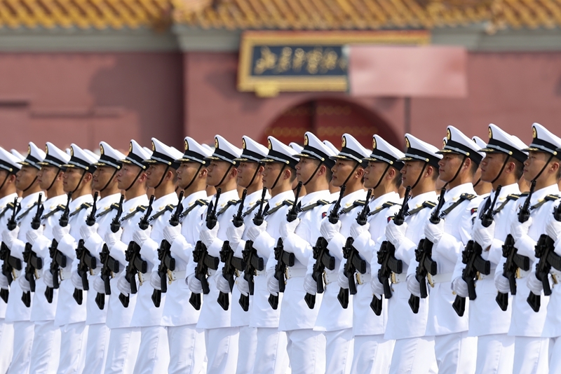 9月3日,紀(jì)念中國(guó)人民抗日戰(zhàn)爭(zhēng)暨世界反法西斯戰(zhàn)爭(zhēng)勝利80周年大會(huì)在北京隆重舉行。這是海軍方隊(duì)接受檢閱。