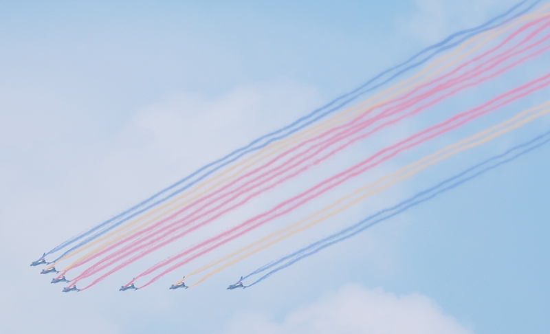 9月3日,紀(jì)念中國(guó)人民抗日戰(zhàn)爭(zhēng)暨世界反法西斯戰(zhàn)爭(zhēng)勝利80周年大會(huì)在北京隆重舉行。這是教練機(jī)梯隊(duì)接受檢閱。