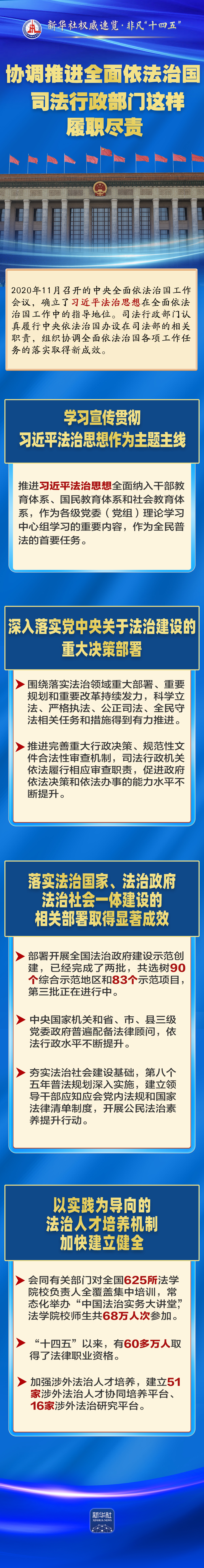 “十四五”期間,在協(xié)調(diào)推進全面依法治國工作落實方面,司法行政部門有哪些主要做法,取得了什么樣的成效?國新辦8日舉行的“高質(zhì)量完成‘十四五’規(guī)劃”發(fā)布會上,司法部從四個方面做出回應。