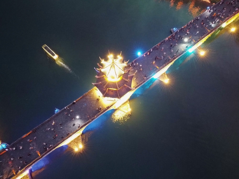 10月3日,游客在貴州省黔東南苗族侗族自治州鎮(zhèn)遠(yuǎn)縣古城游玩(無人機(jī)照片)。