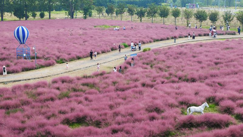 10月5日,人們在南京八卦洲陌上花渡游玩(無人機(jī)照片)。