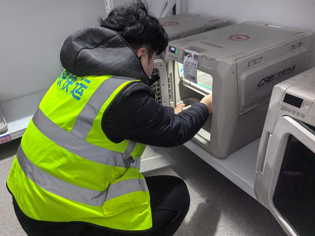 中鐵快運(yùn)太原南站營(yíng)業(yè)部業(yè)務(wù)負(fù)責(zé)人武鑫介紹:“我們自今年10月啟動(dòng)高鐵寵物托運(yùn)服務(wù)試點(diǎn)以來(lái),已經(jīng)托運(yùn)過(guò)寵物貓、寵物狗等。旅客可以在12306官方平臺(tái)或到營(yíng)業(yè)部現(xiàn)場(chǎng)辦理托運(yùn)業(yè)務(wù)。托運(yùn)前,需要提交相關(guān)部門的檢疫證明。工作人員會(huì)對(duì)寵物運(yùn)輸箱和列車環(huán)境進(jìn)行嚴(yán)格消毒。寵物運(yùn)輸箱內(nèi)還帶有攝像頭,主人可以通過(guò)監(jiān)控查看自家寵物的實(shí)時(shí)狀態(tài)。我們配備的工作人員,也會(huì)定時(shí)檢查寵物狀態(tài),提供必要的安撫和飲水。”