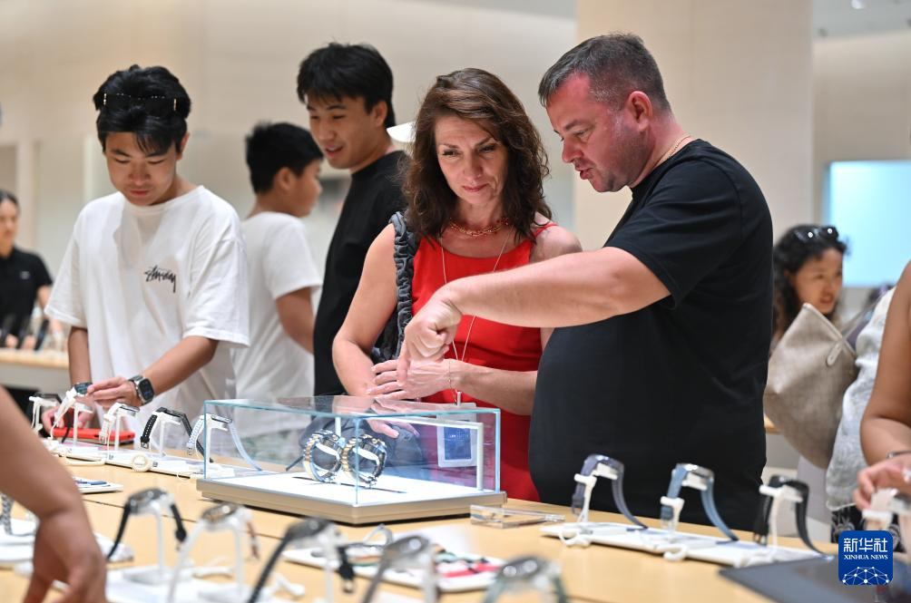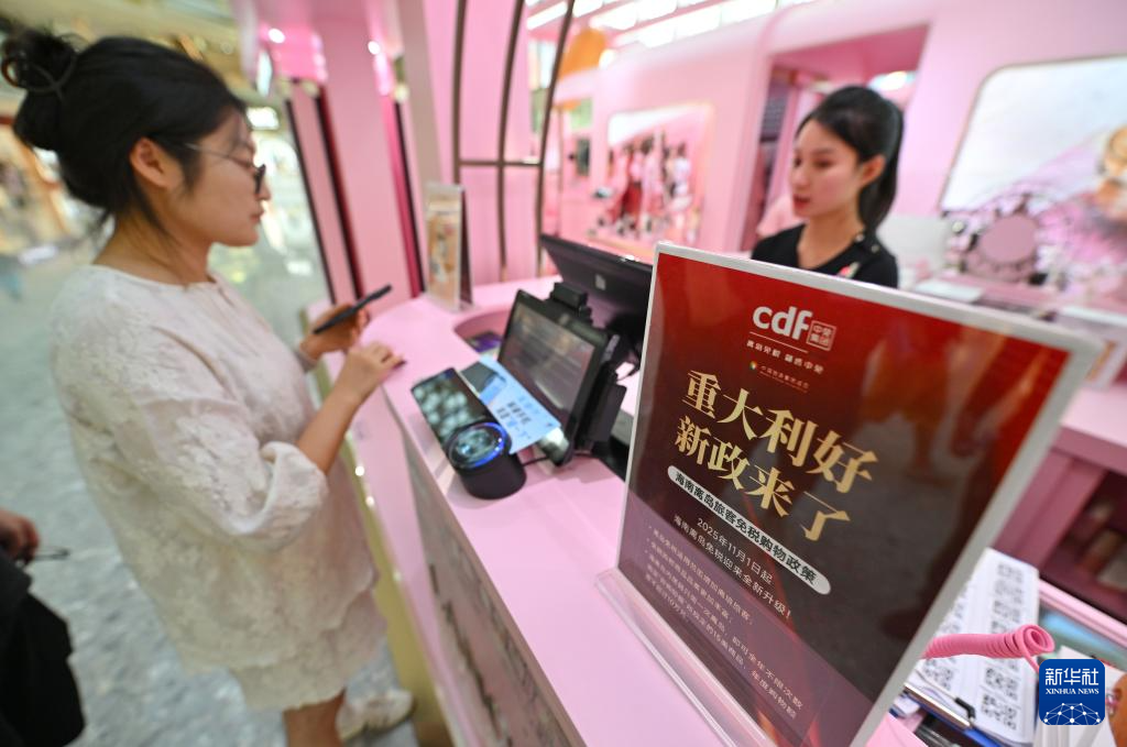11月9日,外國(guó)顧客在三亞國(guó)際免稅城選購(gòu)商品。新政將適用人群擴(kuò)至離境旅客。
