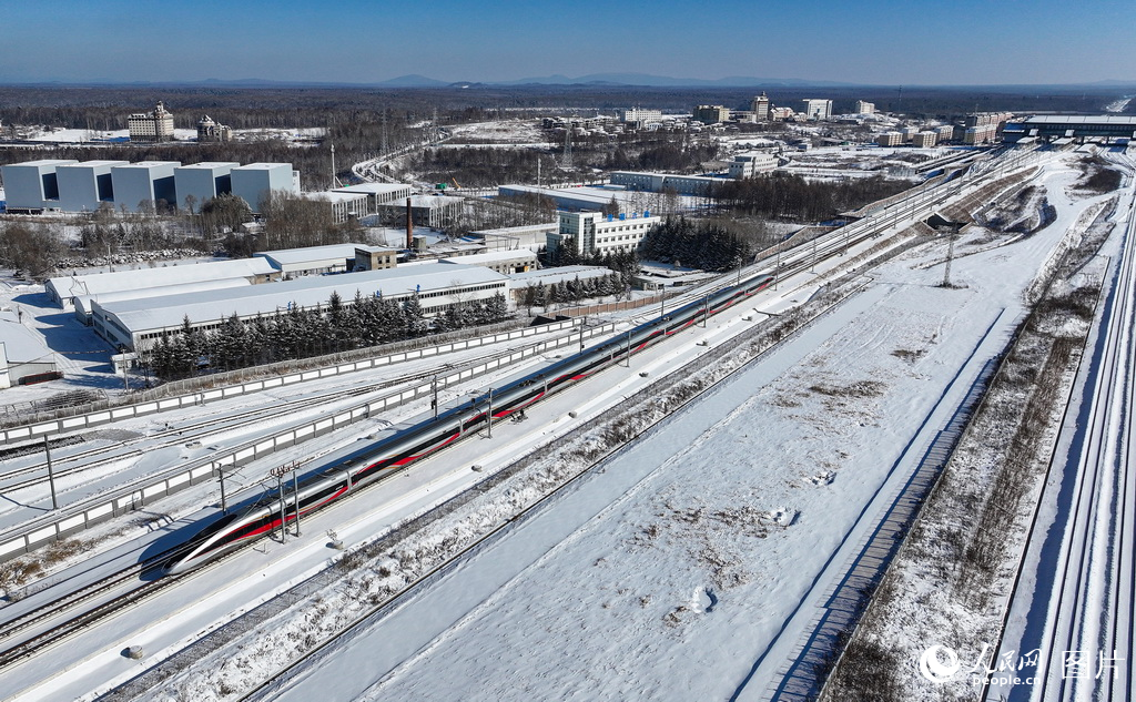 一列復(fù)興號智能動車組列車從長白山西站駛出。