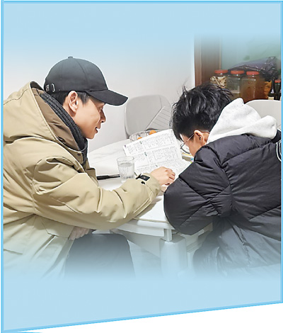 文店村駐村第一書記郭菲(左)在村民家中給孩子輔導(dǎo)功課。