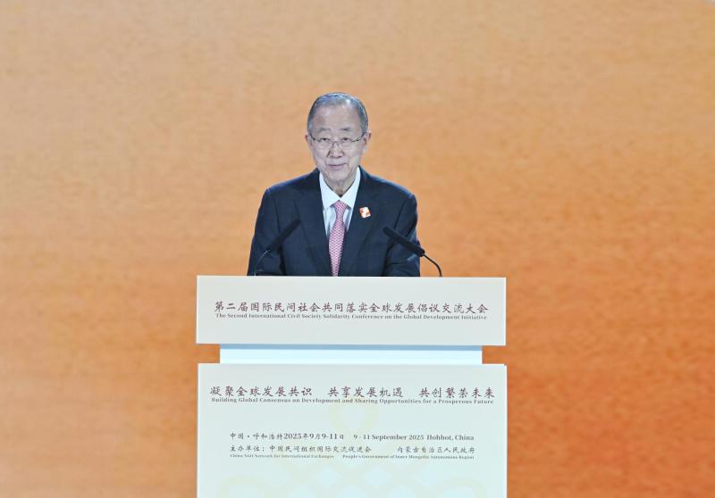 9月10日,聯(lián)合國(guó)第八任秘書長(zhǎng)潘基文在第二屆國(guó)際民間社會(huì)共同落實(shí)全球發(fā)展倡議交流大會(huì)開幕式上致辭。草原云·內(nèi)蒙古新聞網(wǎng)記者  馬建兵  攝